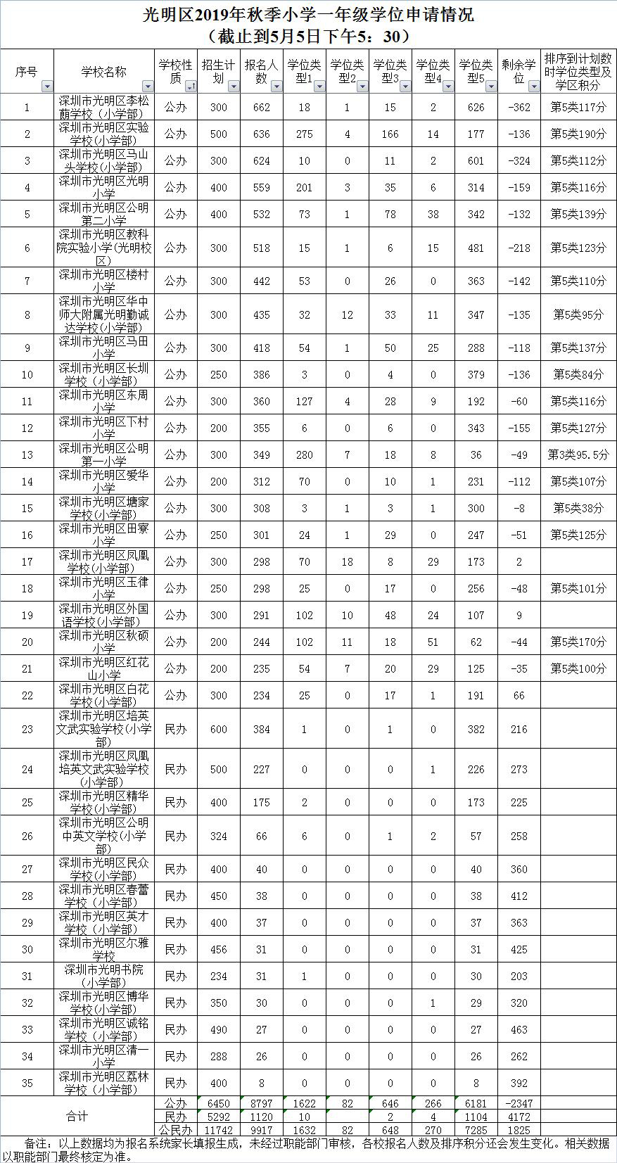 數(shù)據(jù)來源:寶安區(qū)教育局基礎教育科(截至2019年5月12日下午5點)