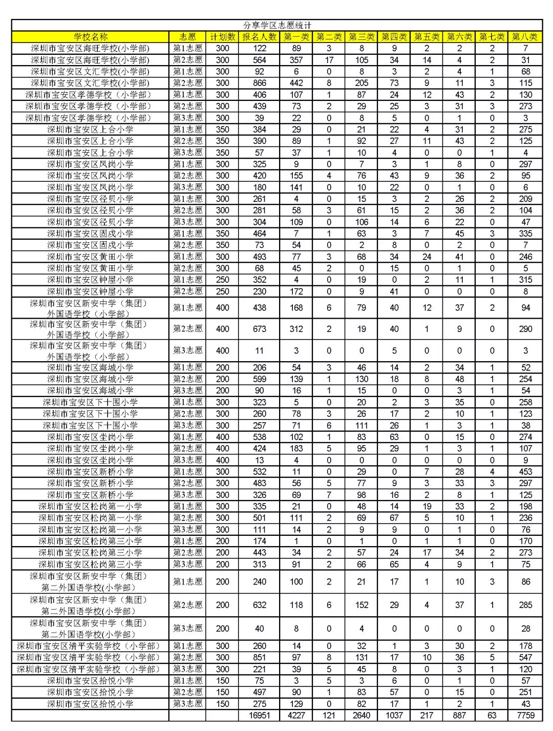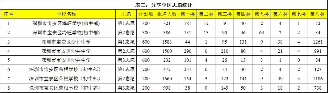 表三:分享學區(qū)志愿統(tǒng)計