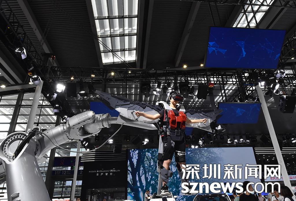 市民通過機(jī)器臂體驗(yàn)“飛翔”的感覺