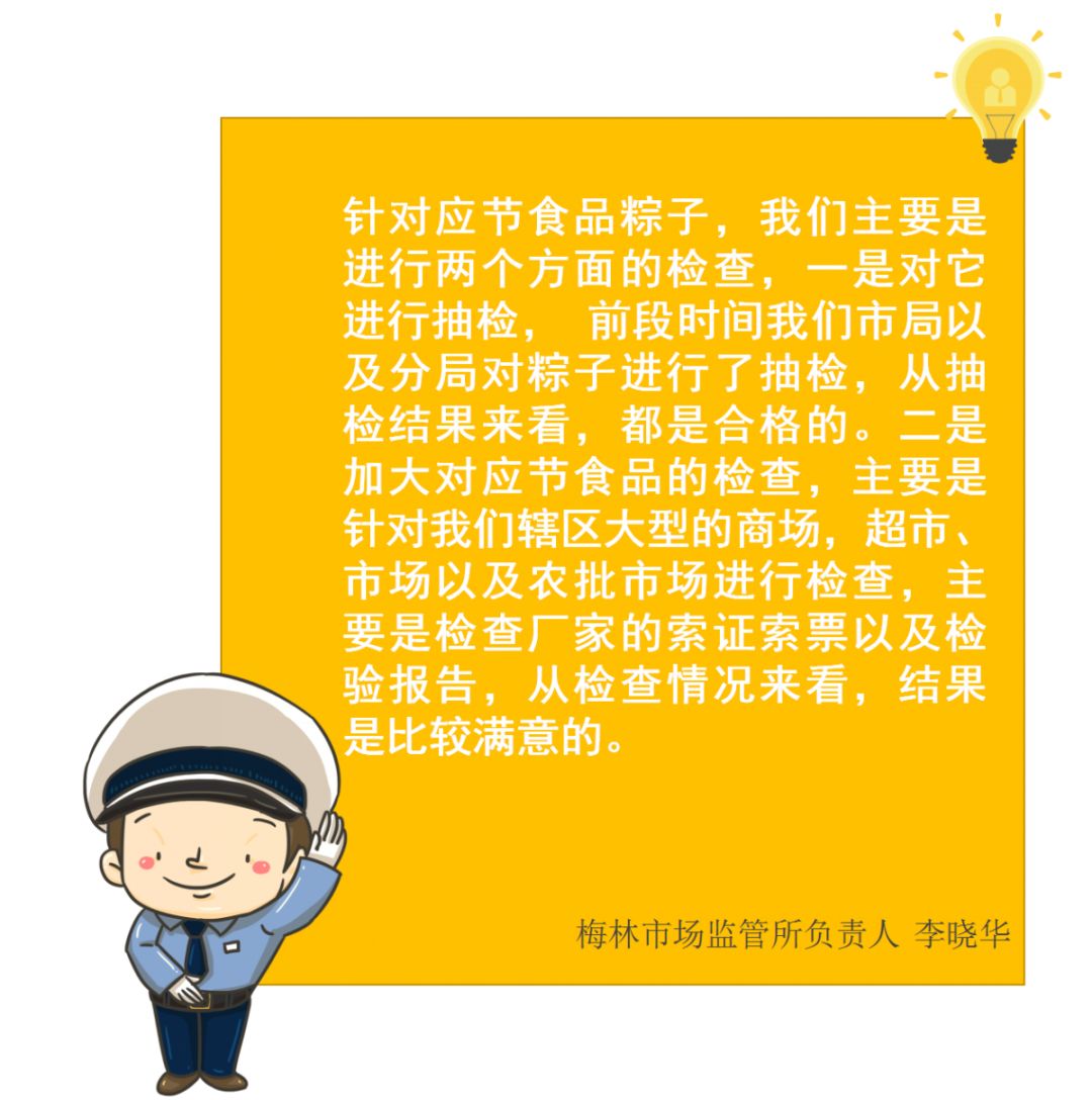 一年一度端午“粽”動員時刻到! 現(xiàn)在是不是想品嘗粽子的美味了? 肉粽肥瘦恰當?shù)娜澫?/p> 蛋黃粽蛋黃留油的鮮潤 白粽沾綿糖的甜醇...... 于是總會來一場 甜咸粽黨battle 而有職業(yè)病的食安君只想關注安不安全 先關注下本期的【食安周報】 2019年食品安全抽樣檢驗情況通報 (第二十一期) 本次共抽檢生產(chǎn)、流通、餐飲環(huán)節(jié)應節(jié)食品(粽子)200批次,涉及經(jīng)營主體123家次,共檢測食品指標1738項次,全部檢測合格。 全部合格 深圳的小伙伴 看完這個抽檢 吃起粽子來,就更安心啦~ 抽檢現(xiàn)場 針對應節(jié)食品粽子 執(zhí)法人員進行兩個方面的檢查 戳視頻直擊檢查現(xiàn)場 現(xiàn)場還對制作粽子原料糯米 還有蔬菜進行快檢 糯米我們檢測了黃曲霉毒素B1 沒有發(fā)現(xiàn)問題 蔬菜樣品(農(nóng)藥殘留)抑制率都低于50% 兩個都是合格的 可以放心吃 但是你懂得怎么吃嗎? 食安君這就告訴你 吃粽子的正確姿勢? 食用過量粽子而引發(fā)消化不良的情況時常發(fā)生老人、小孩和有胃腸道基礎疾病的人 要格外注意! 粽子好吃但要適可而止 粽子選購秘籍 說起買粽子,食安君又要老生常談了,一定要通過正規(guī)渠道購買哦,不要購買路邊的“三無”粽子。 同時注意查看外包裝的食品標簽,如生產(chǎn)日期、保質(zhì)期、生產(chǎn)者名稱和地址、成分或配料表、食品添加劑、食品生產(chǎn)許可證編號等標識是否齊全;并仔細檢查粽子包裝是否完整,真空包裝是否漏氣漲袋,散裝粽子有無變質(zhì)現(xiàn)象等。 健康吃粽小貼士 1.粽子大多屬于高糖、高鹽、高能量食物,不宜過量食用,尤其是糖尿病、三高、肝膽等疾病患者,一定要控制食用量。 2.吃粽子時,最好搭配一些蔬菜、湯羹等,既均衡營養(yǎng),又有助消化;同時,盡量少蘸醬油、砂糖等調(diào)味料,這樣會增加鈉和糖的攝入,不利于健康。 粽子好吃不貪吃 上周,我們向市民發(fā)出了 “你點名,我們來抽檢”的倡議, 我們的食品安全快檢車就來到福田梅林 食品安全快檢車 最后 食安君還是要提醒大家 外出就餐要到證照齊全 環(huán)境衛(wèi)生的餐館 學會看“笑臉”選餐廳 不選擇無證或衛(wèi)生環(huán)境差的路邊攤 歡迎大家積極參與食品安全監(jiān)督工作 關注每周食品抽檢信息公布 欄目:食安周報 民以食為先,食以安為天,食品安全是社會各界最為關注的重點。深圳市市場監(jiān)管局聯(lián)合《第一現(xiàn)場》欄目推出《食安周報》欄目,發(fā)布食品安全權威信息,為市民帶來第一手食安資訊。 播出時間:每周二晚上7:30 播出平臺:深圳廣電《第一現(xiàn)場》 每周抽檢信息通報 定期公布最新的食品及食用農(nóng)產(chǎn)品抽檢信息。 案件現(xiàn)場 直擊市市場監(jiān)管局執(zhí)法人員現(xiàn)場執(zhí)法,以案件解讀食品安全知識,增強現(xiàn)場感。 食品安全科普 對食品安全相關知識進行科普,回應近期食品安全相關謠言,提示食品安全風險。 編輯整理:深圳食事藥聞 轉(zhuǎn)載請注明以上內(nèi)容