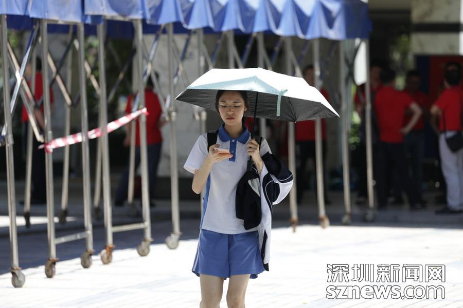 高考首日,深圳夏天的炎熱初顯威力,各路高考保障人員在熾熱的陽光下有序開展工作:交警鐵騎護(hù)送考生順利抵達(dá)考場(chǎng);愛心出租車免費(fèi)接送考生;高考志愿者幫助協(xié)調(diào)考場(chǎng)外秩序……同時(shí),比陽光更“熾熱”的是送考家長(zhǎng)們的熱切和關(guān)心。