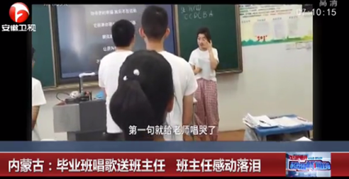 在畢業(yè)前夕合唱班歌送給班主任。