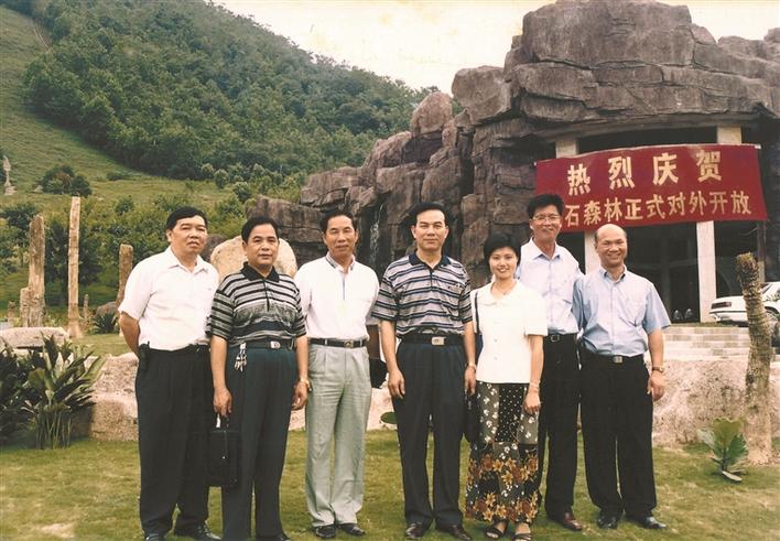 ▲1999年,仙湖植物園化石森林景區(qū)正式對(duì)外開放,陳譚清(右二)與同事在景區(qū)前合影。