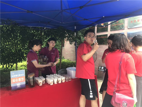 ▲深圳高級中學航天物業(yè)布置的中考愛心服務(wù)點