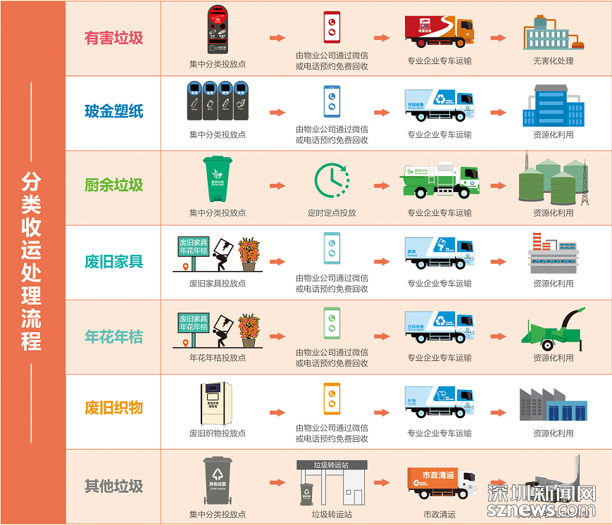 總結(jié)而言,垃圾分類收運(yùn)的處理流程如下圖: