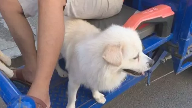 而是讓狗蹲在三輪車駕駛座下方