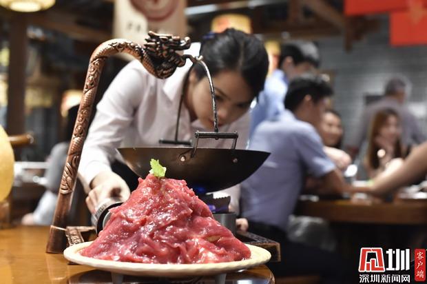 這道堂烹酸菜牛肉,豈止于嫩!肉片厚、大,與鍋中的酸菜共煮,煮久不老。據說只有深圳分店才有的新品,符合本地食客口味。