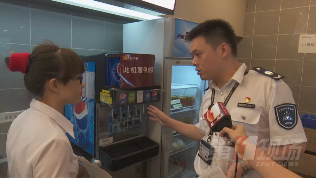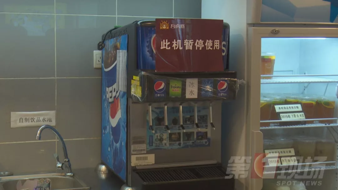 今天中午,記者跟隨轄區(qū)市監(jiān)所執(zhí)法人員來到涉事門店現(xiàn)場檢查。據(jù)了解,2號事發(fā)后,店里的這臺飲料機(jī)已經(jīng)暫停使用,目前飲料出口是用保鮮膜封住的。店方稱,飲料機(jī),每個月由百事可樂廠家人員深層清洗一次,他們的員工是每天對飲料機(jī)的糖漿管道和濾嘴進(jìn)行清洗,都有清洗記錄。
