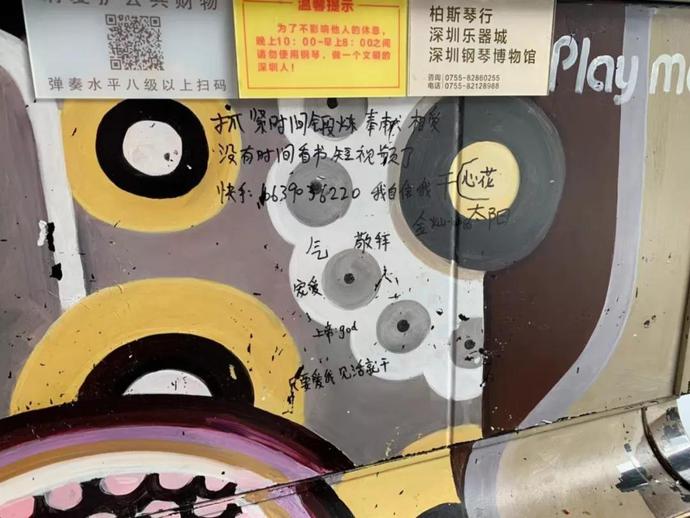 這是誰干的?華強(qiáng)北街頭公共鋼琴竟被涂鴉"到此一游"