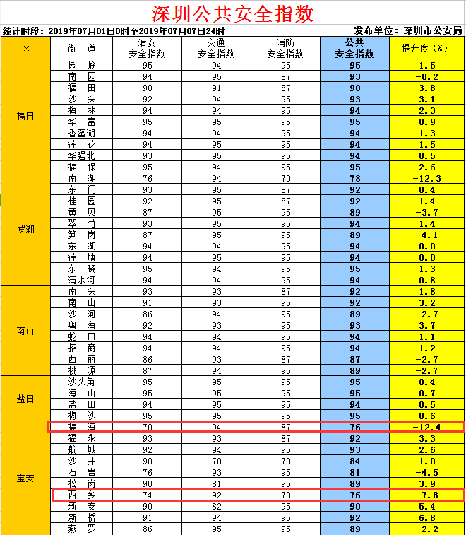 深圳公共安全指數(shù)發(fā)布 寶安這兩個(gè)街道全市倒數(shù)第一