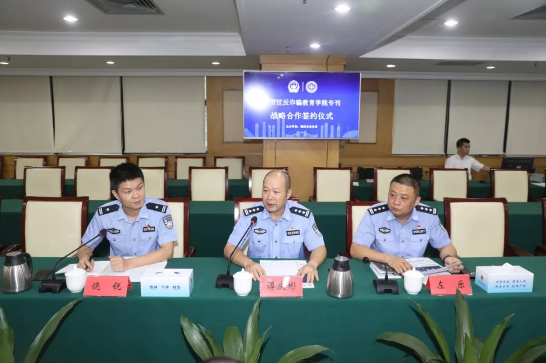 活動現(xiàn)場,福田分局分別與福田區(qū)委政法委、蓮花街道辦、北大深圳醫(yī)院、深圳外國語學(xué)校、中國郵政儲蓄銀行、聯(lián)想有限公司(深圳)、平安大廈物業(yè)、馬成時代廣場、卓越世紀(jì)廣場、山姆會員店、梅林農(nóng)批市場、順豐快遞共12家單位和企業(yè)簽訂了《福田反詐騙教育學(xué)院??瘧?zhàn)略合作協(xié)議》。