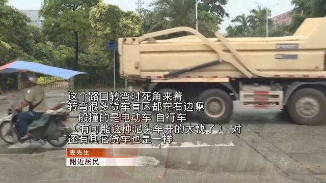 電動(dòng)車就正處于泥頭車盲區(qū)