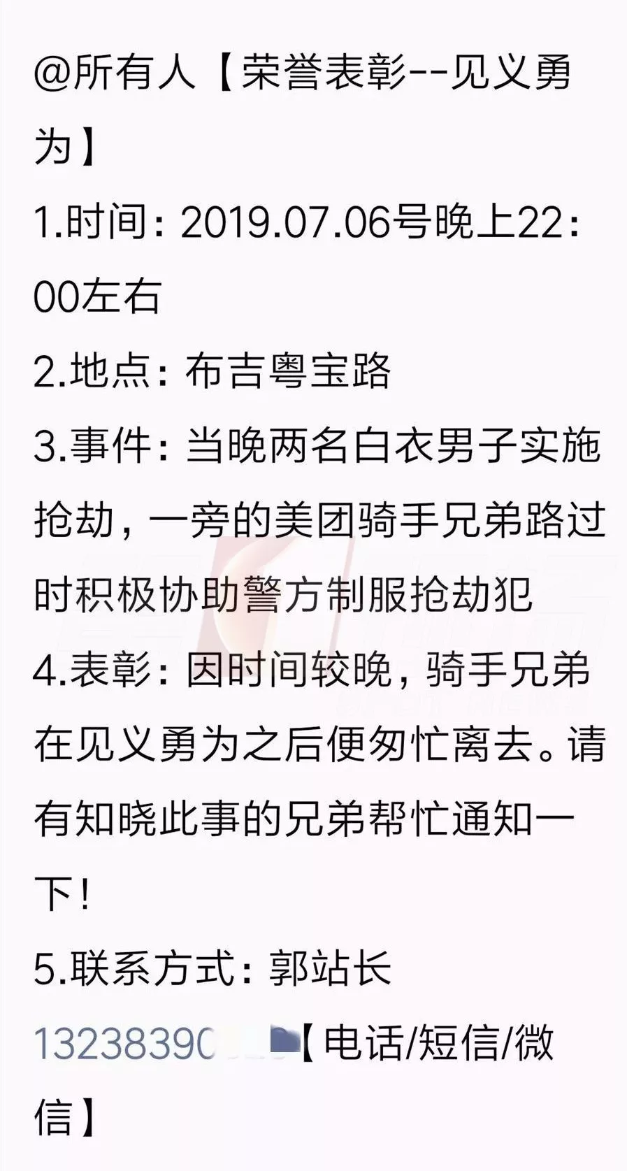 (美團(tuán)公司員工群內(nèi)尋人短信)