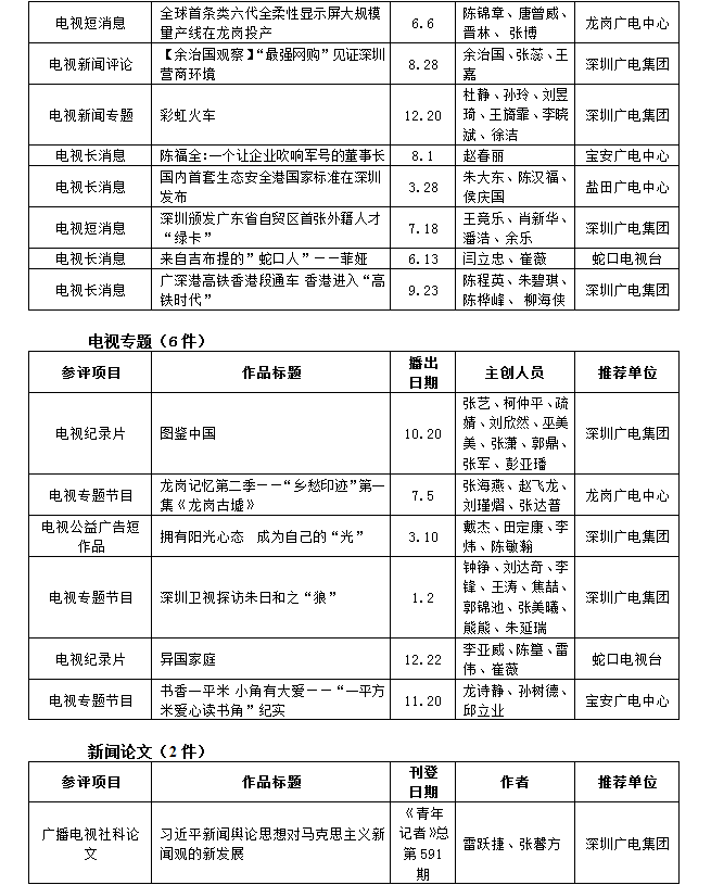 第26屆(2018年度)深圳新聞獎(jiǎng)獲獎(jiǎng)作品目錄