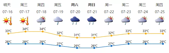 【深圳天氣趨勢(shì)】未來(lái)2-3天高溫天氣持續(xù):16-17日天氣炎熱至酷熱,偶有短時(shí)陣雨,最高氣溫33-35℃;18日天氣炎熱轉(zhuǎn)雷雨;19-21日降雨增多,部分時(shí)間雨勢(shì)較大。高溫黃色預(yù)警生效中,請(qǐng)做好防暑降溫、食品安全保障工作。