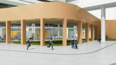 規(guī)劃采用了S型的布局關(guān)系,初中部和小學(xué)部各置一側(cè),各自有相對獨立的院落空間的同時,能夠照顧到空間的流通性,使得二者能夠方便地共享公共教學(xué)設(shè)施。