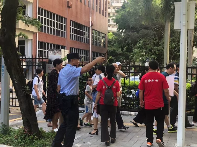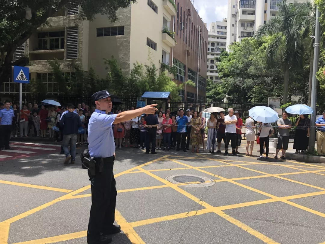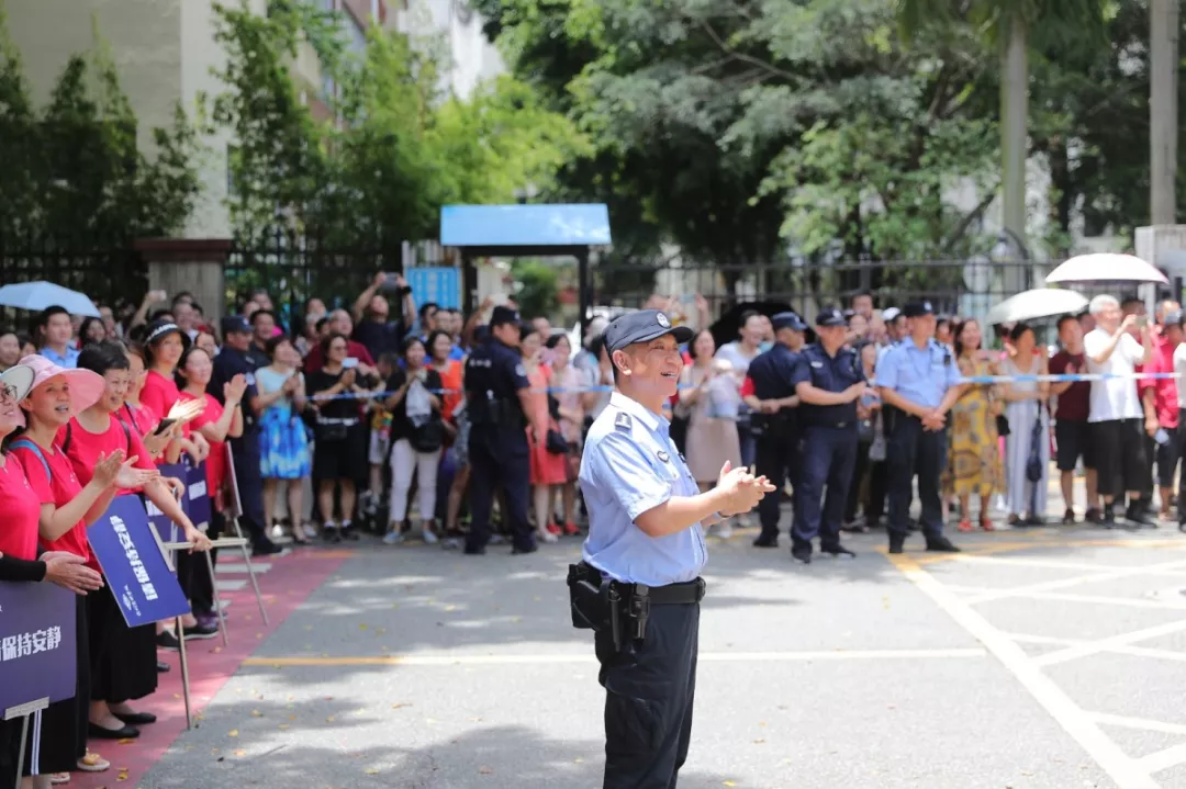 在深圳實(shí)驗(yàn)中學(xué)的校門(mén)外,正在執(zhí)勤護(hù)考的通心嶺派出所所長(zhǎng)林志強(qiáng)正跟送考的家長(zhǎng)們“嘮嗑”?!按蠹叶颊具@么久了,辛苦了!一會(huì)考試結(jié)束后,咱們來(lái)猜一猜第一個(gè)走出來(lái)的是男生還是女生?!薄拔也率悄猩?。”“我猜是女生?!奔议L(zhǎng)們一掃臉上焦急的表情,開(kāi)始笑著討論起來(lái)。