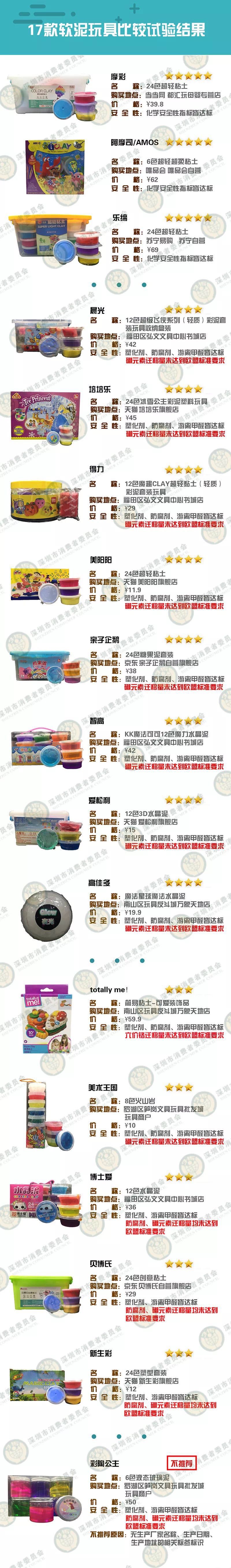 深圳特區(qū)報(bào)2019年7月19日訊 軟泥玩具作為寓教于樂(lè)的新產(chǎn)物,且與孩子皮膚高頻且長(zhǎng)時(shí)間接觸,消費(fèi)者更加注重其質(zhì)量安全,然而市場(chǎng)上品牌眾多,魚(yú)龍混雜,消費(fèi)者選購(gòu)時(shí)很難甄別優(yōu)劣。為了更好地指引消費(fèi),為孩子們選出安全可靠的軟泥玩具,深圳市消費(fèi)者委員會(huì)聯(lián)合區(qū)消委會(huì)委托深圳市品質(zhì)消費(fèi)研究院開(kāi)展軟泥玩具的比較試驗(yàn),17款樣品中,3款獲評(píng)五星,1款不推薦使用。