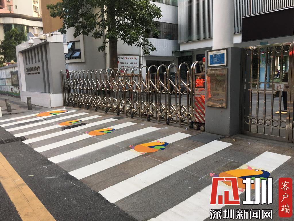 深圳試點(diǎn)兒童友好型交通設(shè)施,圖為彩繪有企鵝的斑馬線