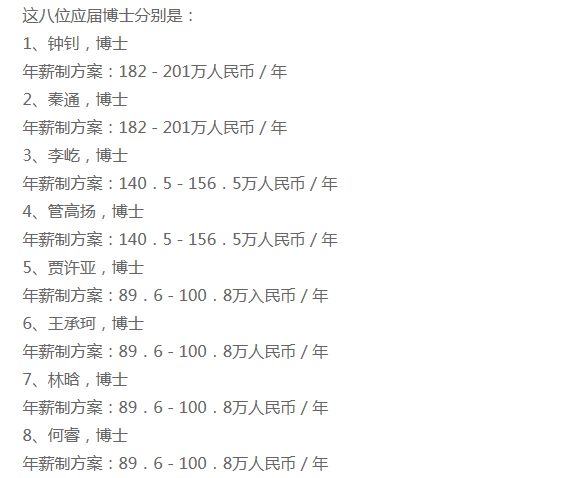 但,最近就有8位頂薪博士進了華為