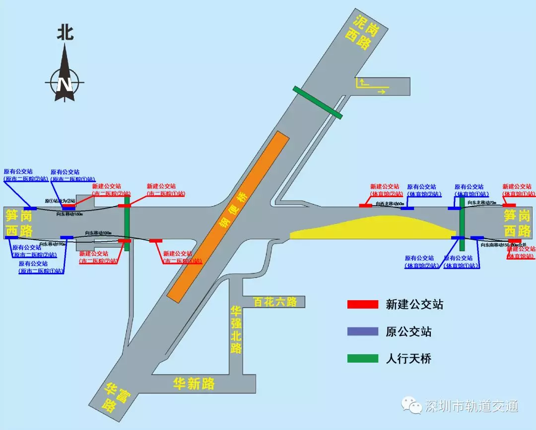 此次交通疏解涉及“市二醫(yī)院站”及“體育館站”公交站臺(tái)的變動(dòng)。(詳見(jiàn)圖2)