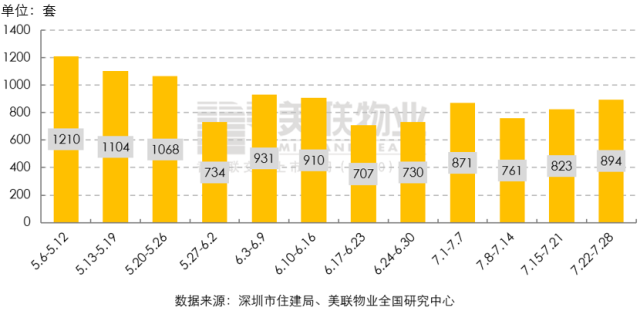7月22日—7月28日一周內(nèi),全市共簽約成交一手住宅894套/8.5萬㎡,環(huán)比分別增長8.6%和8.0%。從周成交套數(shù)來看,連續(xù)兩周環(huán)比增長,達(dá)到6周以來的最高值。