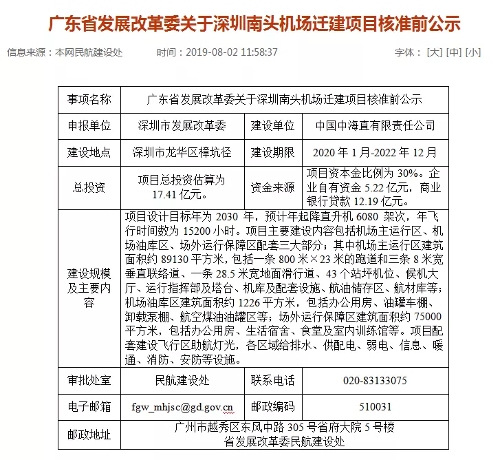 《關(guān)于深圳南頭機(jī)場(chǎng)遷建項(xiàng)目核準(zhǔn)前公示》。