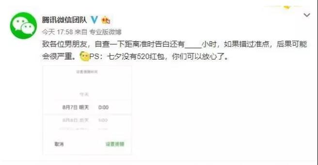 "七夕沒有520紅包,你們可以放心了"。