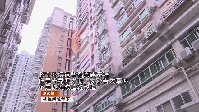 而社區(qū)問題專家鄒家健表示,城市的更新改造有一定程序,開發(fā)商需要先向政府部門進(jìn)行報(bào)批,并且按照深圳城市更新政策來(lái)說(shuō),業(yè)主的城市更新意愿應(yīng)當(dāng)達(dá)100%才可以進(jìn)行舊改,并非開發(fā)商所說(shuō)的“雙三分之二”。