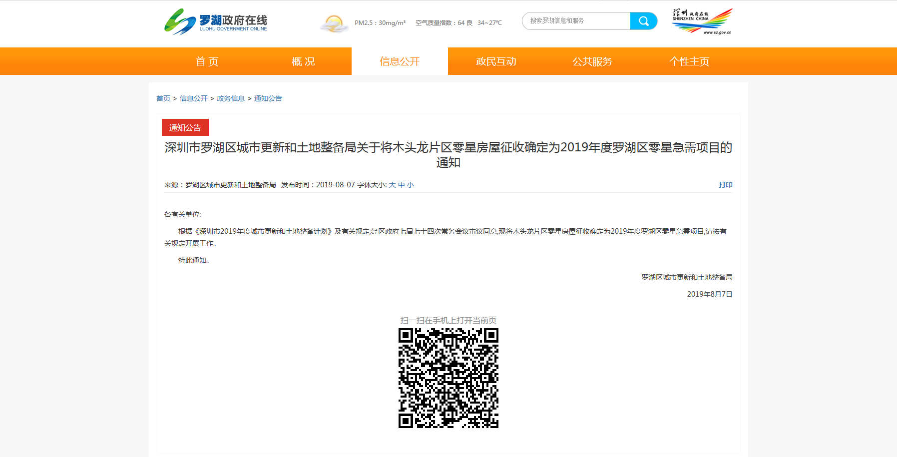 官方網(wǎng)站發(fā)布木頭龍片區(qū)零星房屋征收提示