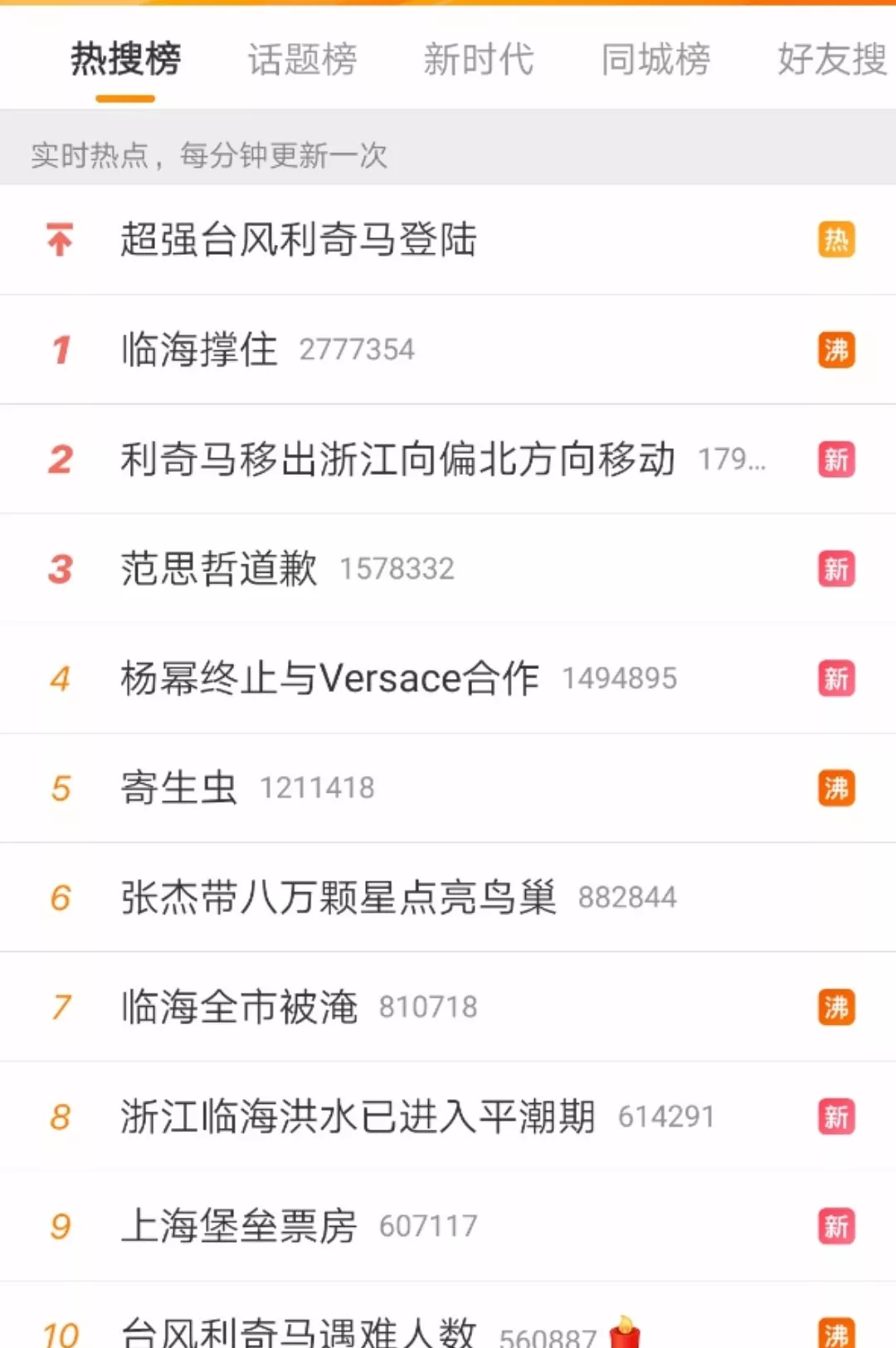 該消息發(fā)出半個小時后,臨海市防汛防旱指揮部于18點(diǎn)30分再次發(fā)出緊急通知:古城范圍內(nèi)的各位市民,為安全起見,請盡快往居住房屋二樓或更高處轉(zhuǎn)移,切勿往較遠(yuǎn)處轉(zhuǎn)移。直到10日晚21點(diǎn)許,臨海市防汛防旱指揮部第三次發(fā)出通報,表明洪水已進(jìn)入平潮期,水位正在逐漸下降。臨?!案婕薄?,牽動著億萬人的心。一時間,微博熱搜榜上,臨海的消息占據(jù)多條。