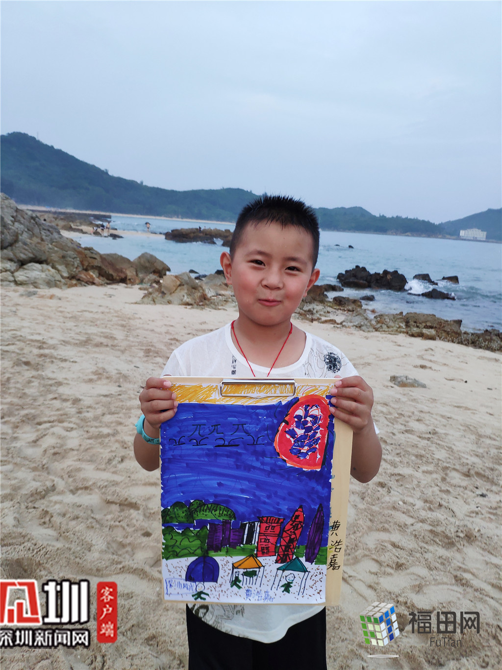 這是我眼中的深圳,既有高樓大廈,也有山和海。我喜歡它,所以我把它畫下來(lái)”