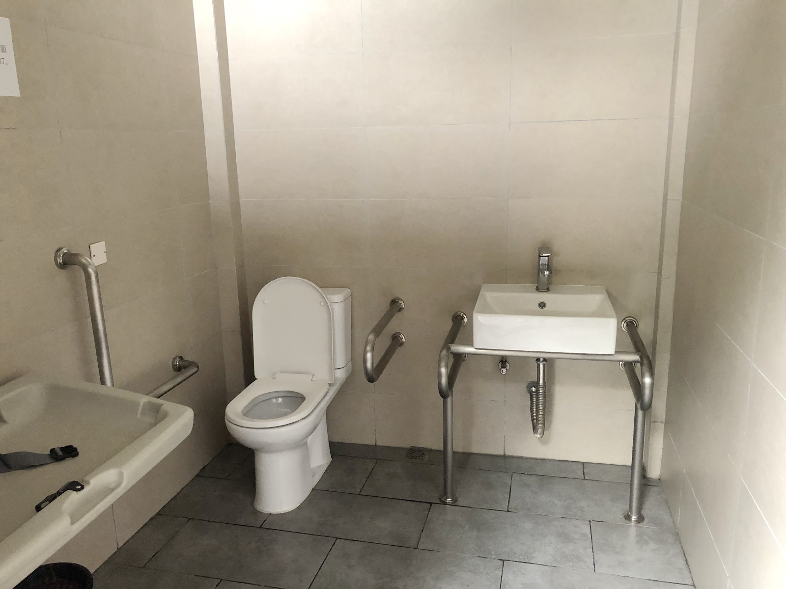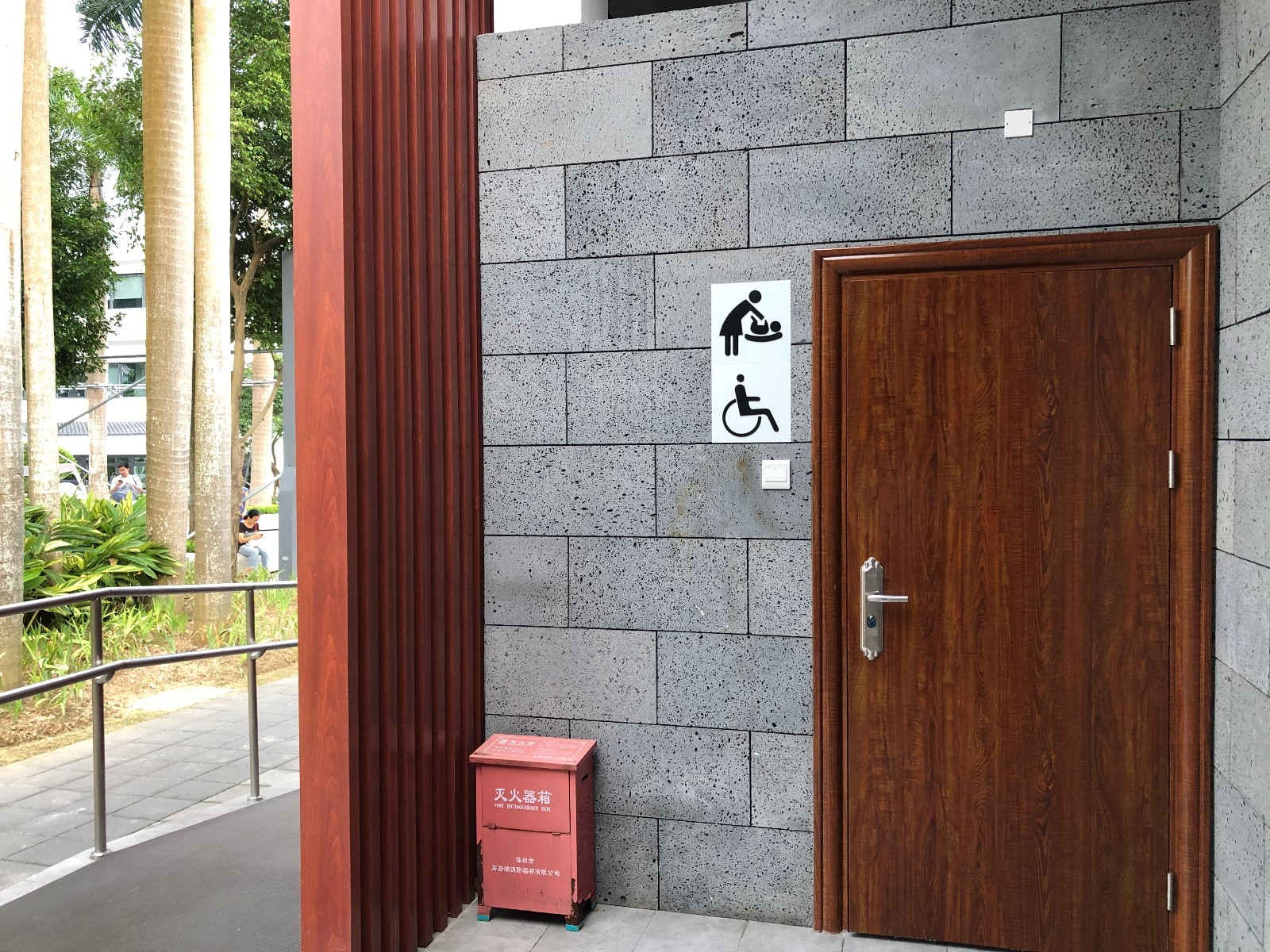 ▲記者來(lái)到深圳人頗為喜愛(ài)的“網(wǎng)紅公園”——香蜜公園采訪時(shí),正值夕陽(yáng)西下,天氣由炎熱略轉(zhuǎn)涼爽,很多家長(zhǎng)帶著孩子在兒童游樂(lè)場(chǎng)里嬉戲。游樂(lè)場(chǎng)附近有一個(gè)公共廁所,記者沒(méi)有找到親子衛(wèi)生間,但也在公廁門口發(fā)現(xiàn)了母嬰室、殘疾人衛(wèi)生間“二合一”的衛(wèi)生間,內(nèi)有一個(gè)帶扶手的坐便器和母嬰設(shè)施。