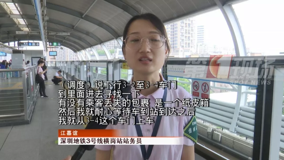 當(dāng)時(shí),一輛列車即將到達(dá)龍崗的橫崗站,站務(wù)員從3-4號門上車尋找。最終,站務(wù)員在列車座位下面找到了乘客遺失的紙箱,并通知乘客前往橫崗站。