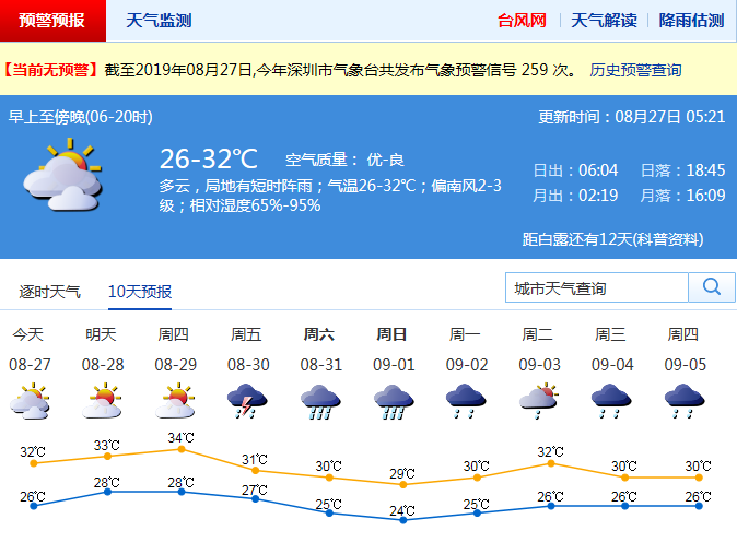 未來三四天 深圳悶熱有陣雨 但周末開始又有一次風雨過程