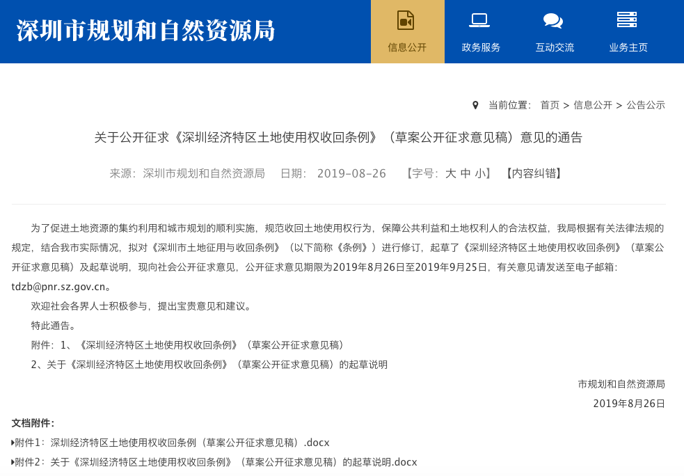 據(jù)了解,目前該《條例》(草案公開征求意見稿)正向社會(huì)公開征求意見,公開征求意見期限為2019年8月26日至2019年9月25日,有關(guān)意見請發(fā)送至電子郵箱:tdzb@pnr.sz.gov.cn。