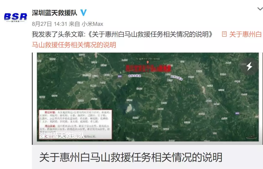 ▲深圳藍(lán)天救援隊(duì)官方微博通報(bào)接到求助