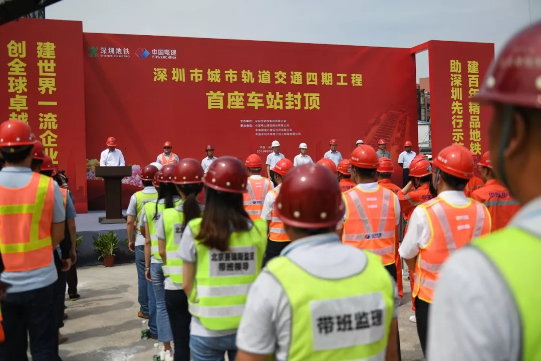 ▲深圳市城市軌道交通四期工程首座車站-洲石路站封頂儀式現(xiàn)場