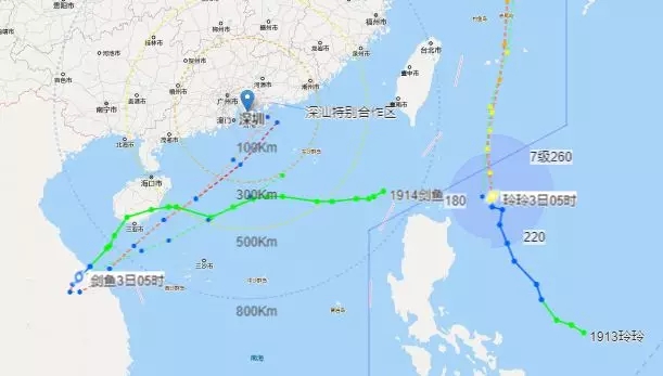見圳客戶端.深圳新聞網(wǎng)2019年9月3日訊 9月2日,今年第13號(hào)臺(tái)風(fēng)“玲玲”(強(qiáng)熱帶風(fēng)暴級(jí))生成,將向臺(tái)灣以東洋面靠近。今日2時(shí),記者從深圳市氣象臺(tái)獲悉,另一個(gè)南海低壓也已加強(qiáng)為今年第14號(hào)臺(tái)風(fēng)“劍魚”(熱帶風(fēng)暴級(jí)),5時(shí)其中心位于深圳市西南方大約1000公里,中心附近最大風(fēng)力8級(jí)(64公里/小時(shí)),中心最低氣壓995百帕。今明兩天其將在越南中部沿海一帶徘徊打轉(zhuǎn),之后可能轉(zhuǎn)向東北方向移動(dòng)并靠近廣東沿海。