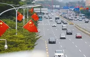 深圳的主干道上已經插上了國旗,