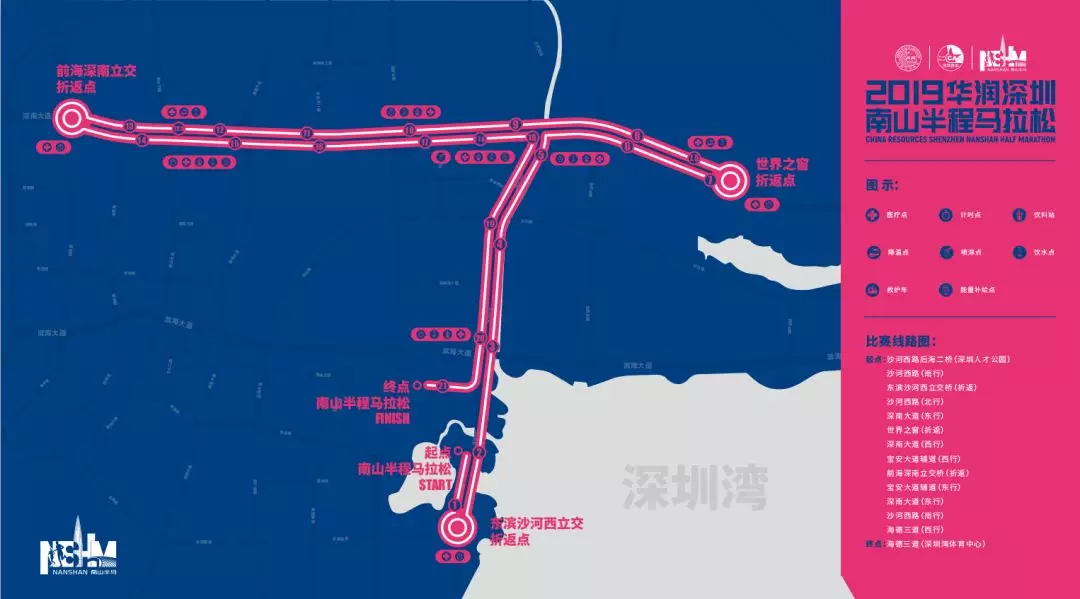 值得一提的是,今年南馬的路線較去年略有調(diào)整,賽事線路整體呈T字形,賽道起點(diǎn)在沙河西路后海二橋(深圳人才公園東門),賽道終點(diǎn)在海德三道(深圳灣體育中心),賽道主體由沙河西路和深南大道組成一縱一橫,途徑深圳灣總部經(jīng)濟(jì)片區(qū)、高新技術(shù)園、大沙河生態(tài)長(zhǎng)廊、世界之窗、南頭古城等多個(gè)地標(biāo)性建筑,不僅彌補(bǔ)了往年沒有經(jīng)過(guò)深圳灣海域的遺憾,讓選手在賽跑之余一覽灣區(qū)海景,更向選手與觀眾充分展示南山自然人文科技之美。