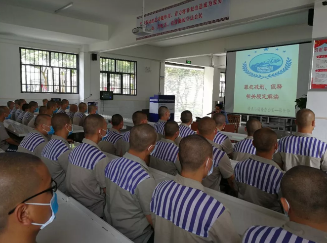 特殊園丁給學員講解減刑假釋的法律法規(guī)等內(nèi)容。