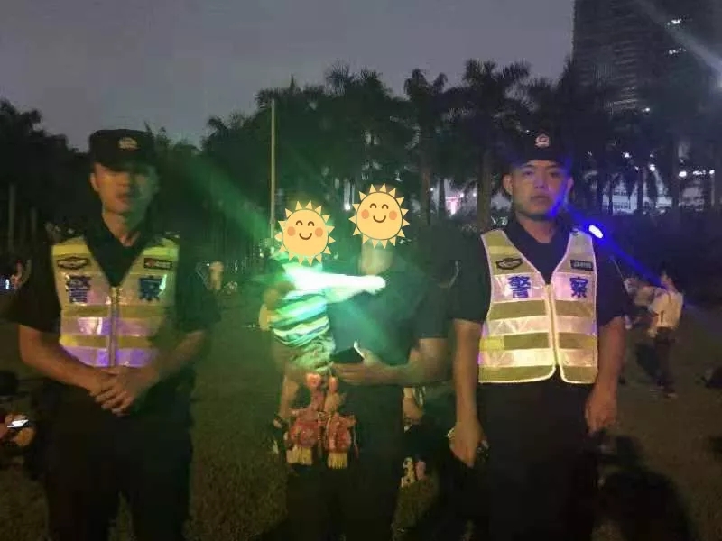 中秋夜21時許,深圳市公安局福田分局機動訓(xùn)練大隊四中隊隊員黃俊豪、施裕楓在蓮花山巡邏時,發(fā)現(xiàn)一名兩歲左右的幼童和父母走散了在哭著找媽媽,因小孩年齡太小無法獲取父母的聯(lián)系方式,兩名隊員便一直守護(hù)著孩子并在附近尋找其父母,直到找到其父親后送還小孩。