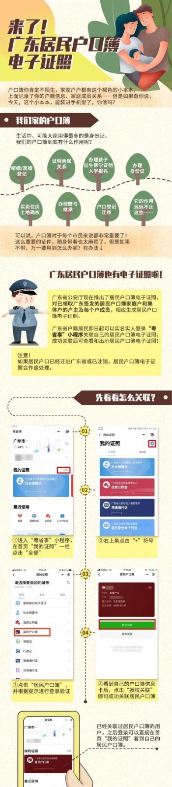 廣東省公安廳此次推出居民戶口簿電子證照,對于已經領取廣東簽發(fā)的戶口簿家庭戶和集體戶的戶主及每個戶成員,都相應生成居民戶口簿電子證照。需要注意的是,如果居民戶口已經遷出廣東省或已注銷,居民戶口簿電子證照會作廢處理。