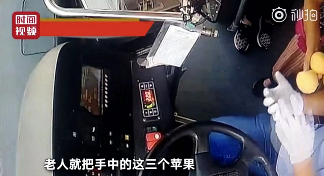 而老人隨后從包里拿出3個(gè)蘋(píng)果,