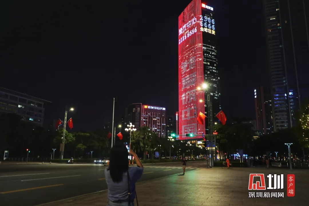 【寶安區(qū)】謝女士有一段時間沒來海濱廣場散步了,今晚她驚喜地發(fā)現(xiàn)這塊紅色“我愛你中國”燈光秀,連忙拿起手機記錄下這一刻。