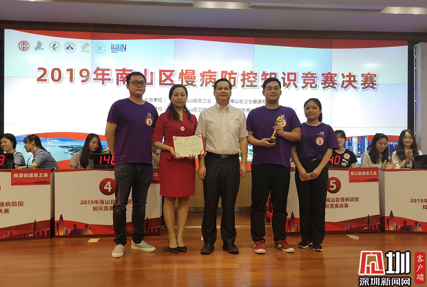 見圳客戶端·深圳新聞網(wǎng)2019年9月23日訊(見圳客戶端、深圳新聞網(wǎng)記者 劉夢(mèng)婷 通訊員 張媞)日前,一場(chǎng)“非專業(yè)”健康知識(shí)競(jìng)賽進(jìn)入決賽,參賽8支隊(duì)伍均來(lái)自非醫(yī)療衛(wèi)生專業(yè)人群。經(jīng)過(guò)激烈角逐,2019年南山區(qū)慢病防控知識(shí)競(jìng)賽圓滿落幕,西麗街道總工會(huì)代表隊(duì)奪冠。