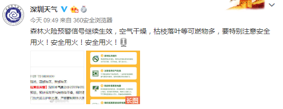此外,森林火險(xiǎn)預(yù)警信號繼續(xù)生效,空氣干燥,枯枝落葉等可燃物多,要特別注意安全用火!