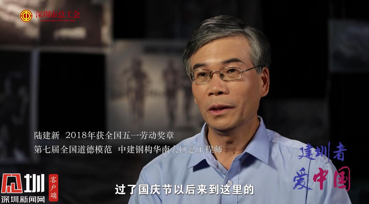 中建鋼構(gòu)華南大區(qū)總工程師陸建新于2018年獲得全國(guó)五一勞動(dòng)獎(jiǎng)?wù)?,他也是第七屆全?guó)道德模范。18歲就已來(lái)到深圳參與國(guó)貿(mào)大廈建造的他,談及在深圳奮斗的歷程時(shí),幾乎是熱淚盈眶。
