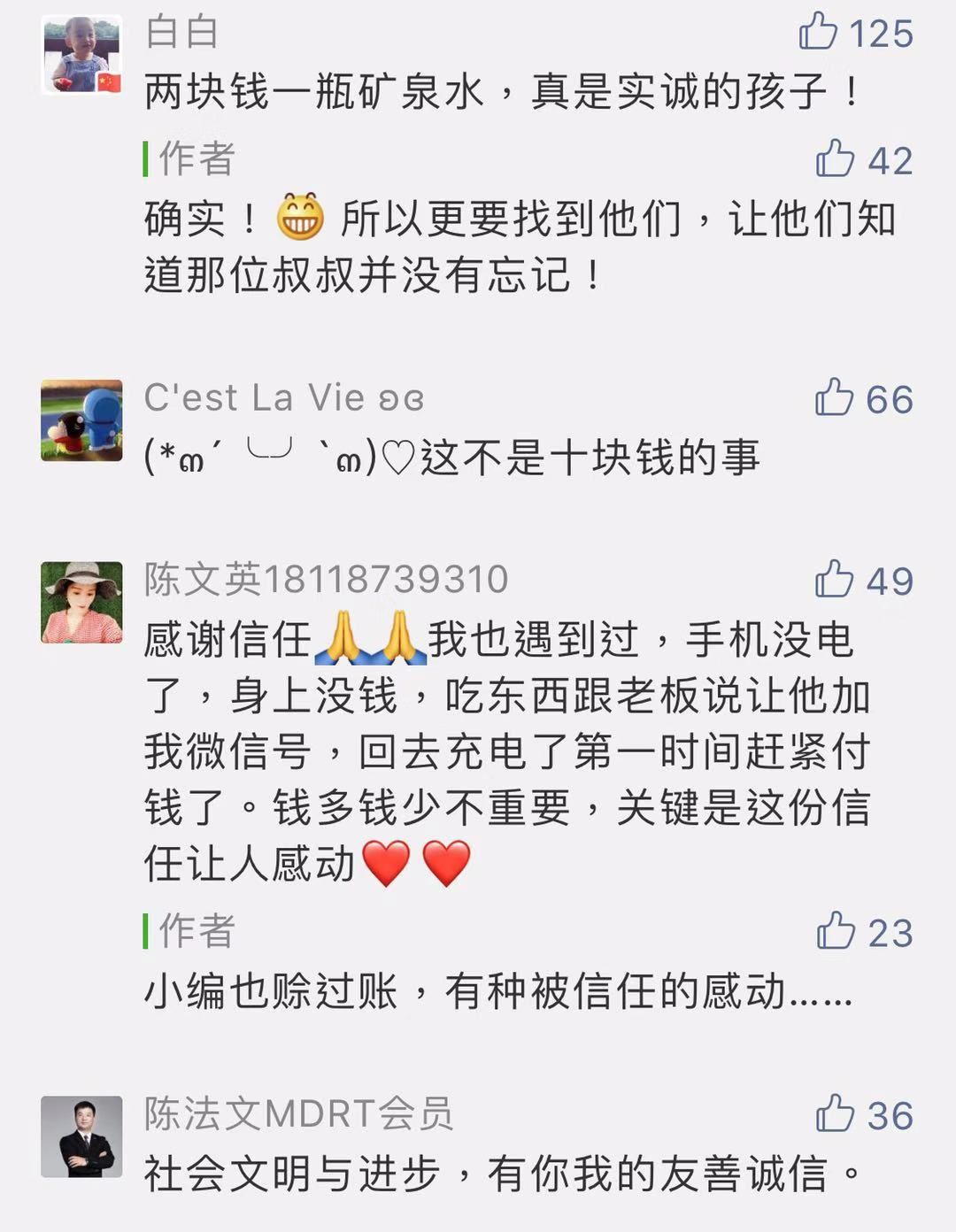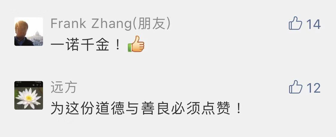 網(wǎng)友表示對雙方之間建立起來的誠信與信任感動,紛紛點贊!